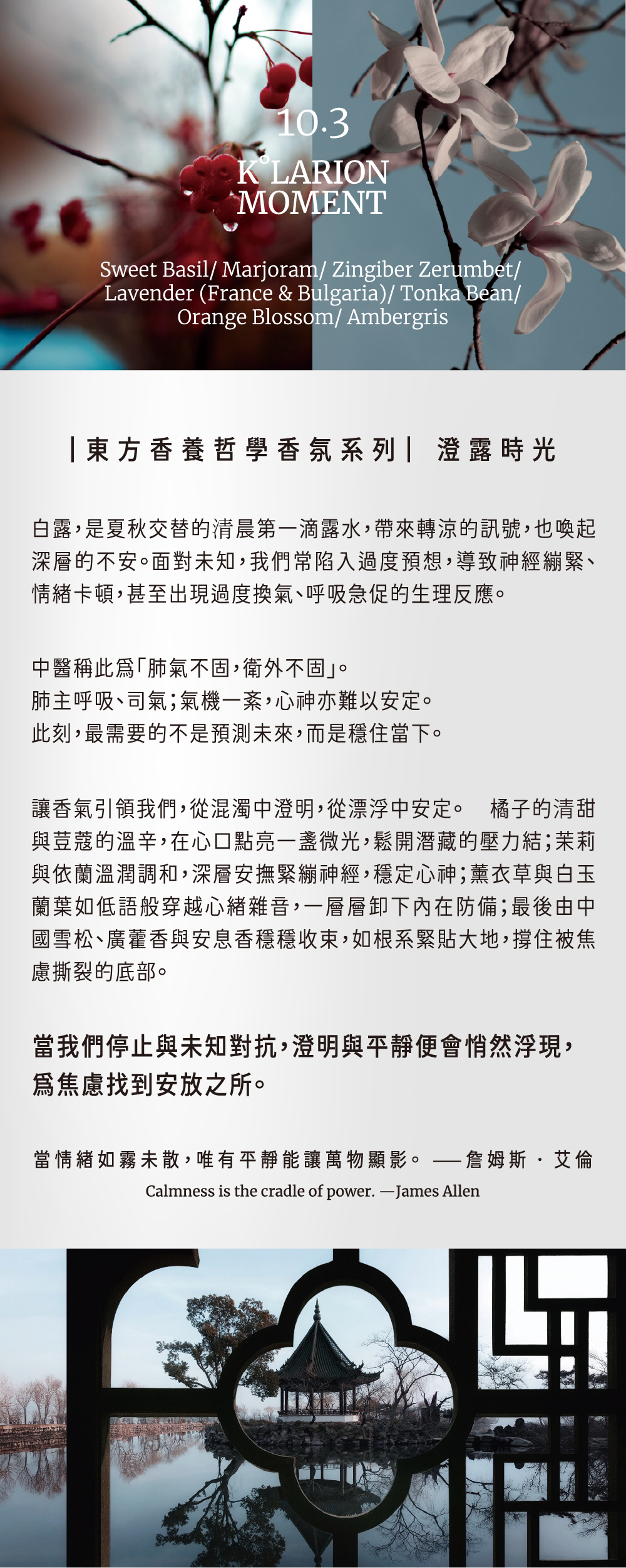 氣味|橘子、荳蔻、茉莉原精、特級依蘭、真正薰衣草、白玉蘭葉、中國雪松、廣藿香、安息香、橡木苔