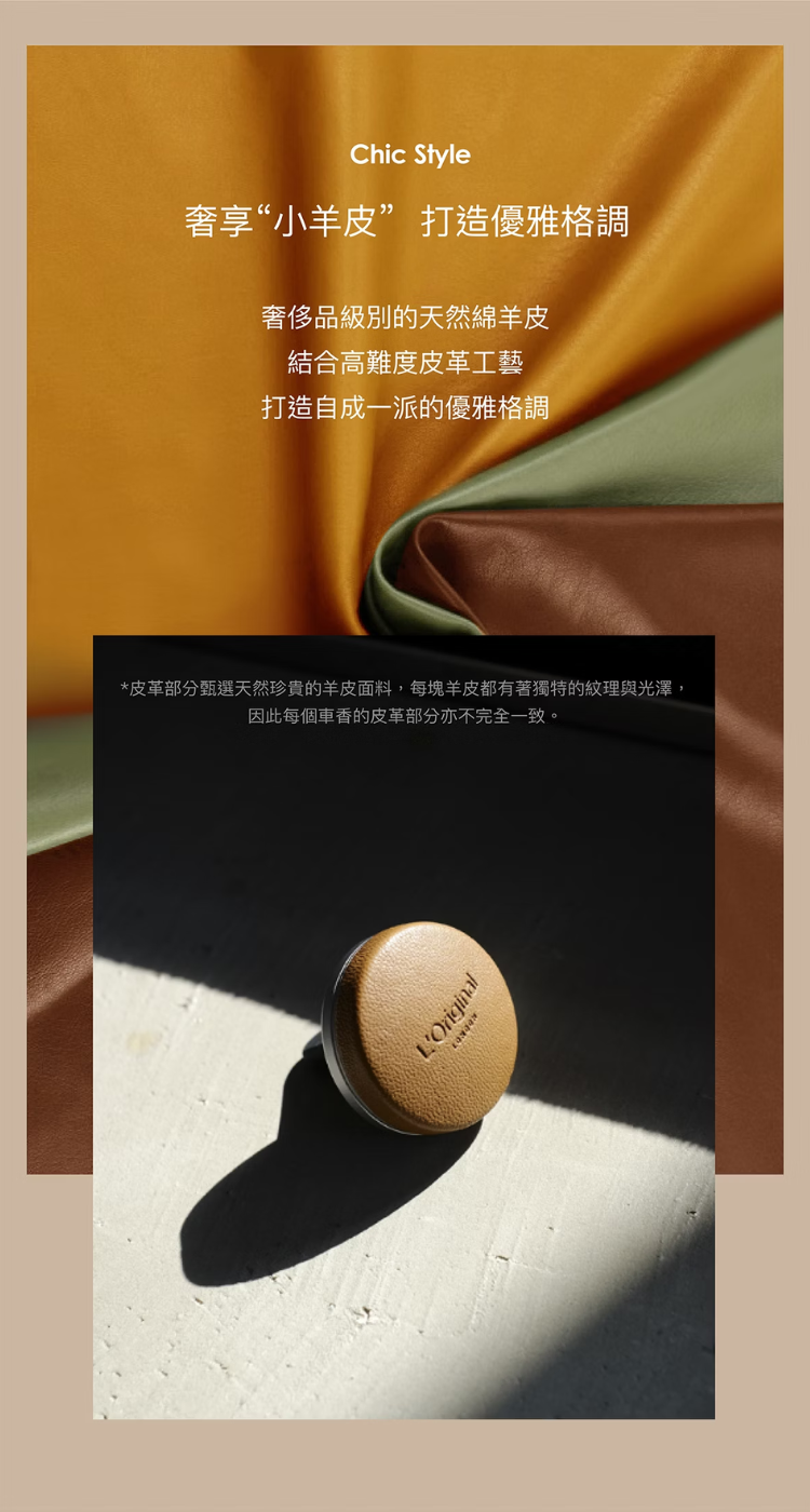 A:小羊皮系列車香,選取天然羊皮制作。每塊天然羊皮皮革更有自身獨特的紋理與光澤,因此每支車香的皮革部分也會出現不一樣的紋理與光澤,屬於正常現象,介意者請勿下單。
