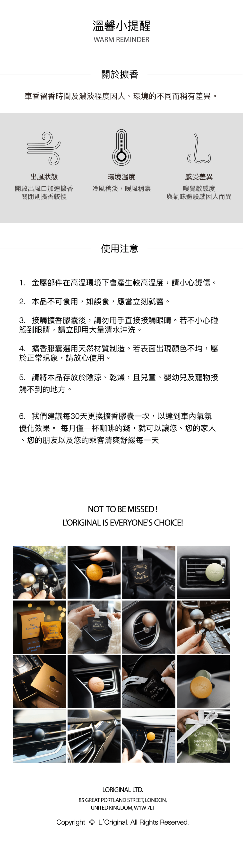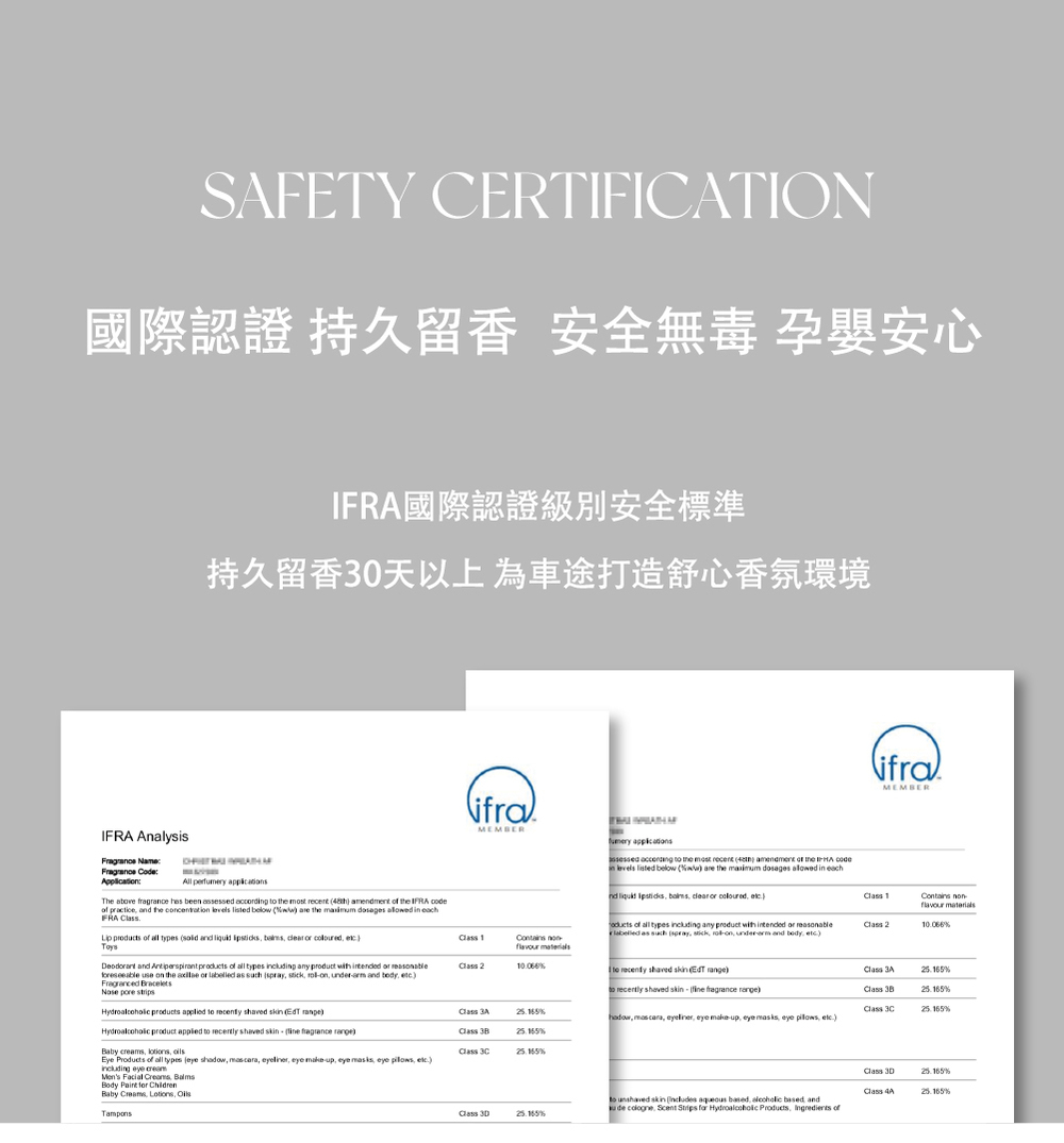 A:因為創始人Olesia 堅持選用高級香水香精,不使用劣質或過度添加化學成分的香精為原料,以優化車內氛圍為前提調製香型,我們忠於追求天然怡人,優雅適中的香味。