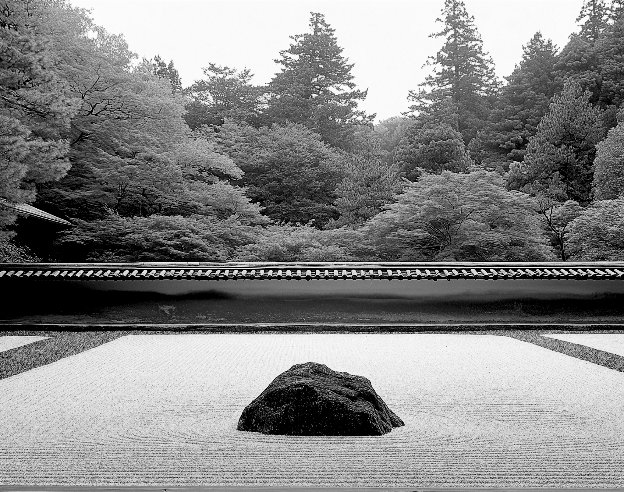 靜謐的空氣中彌漫著檀木與青苔的幽香,微風輕拂砂礫間的波紋,帶著樱花搖晃。鼻尖交織著樱花和綠茶的淡雅香調,彷彿隨著古琴的餘音迴盪,心靈也隨之進入禪意之境。