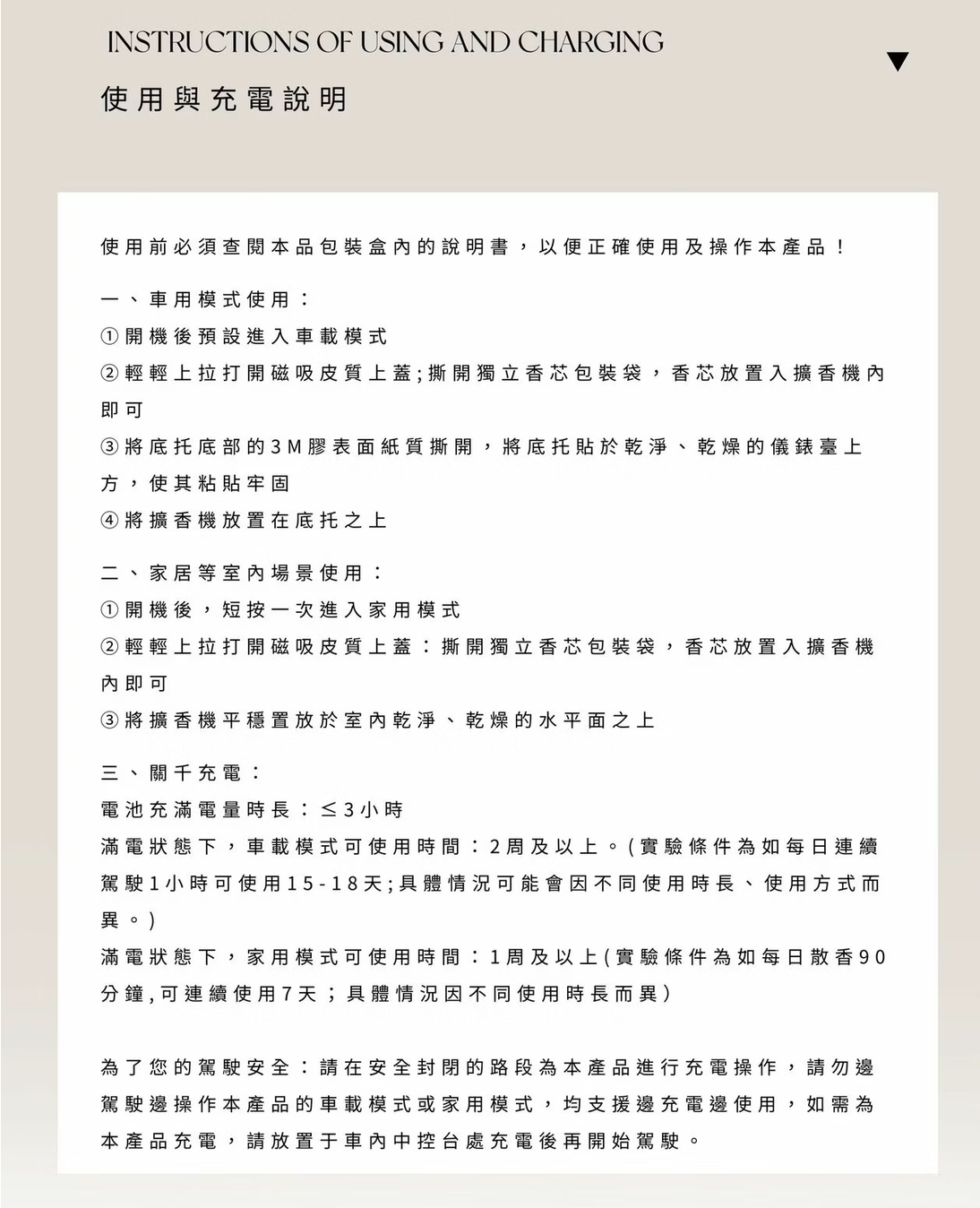 A: 因本產品擴香機有車載使用模式以及家用模式,並可手動操作關閉出風口進行鎖香, 更因不同的使用場景與方式,導致香片的留香時長會有所差異。