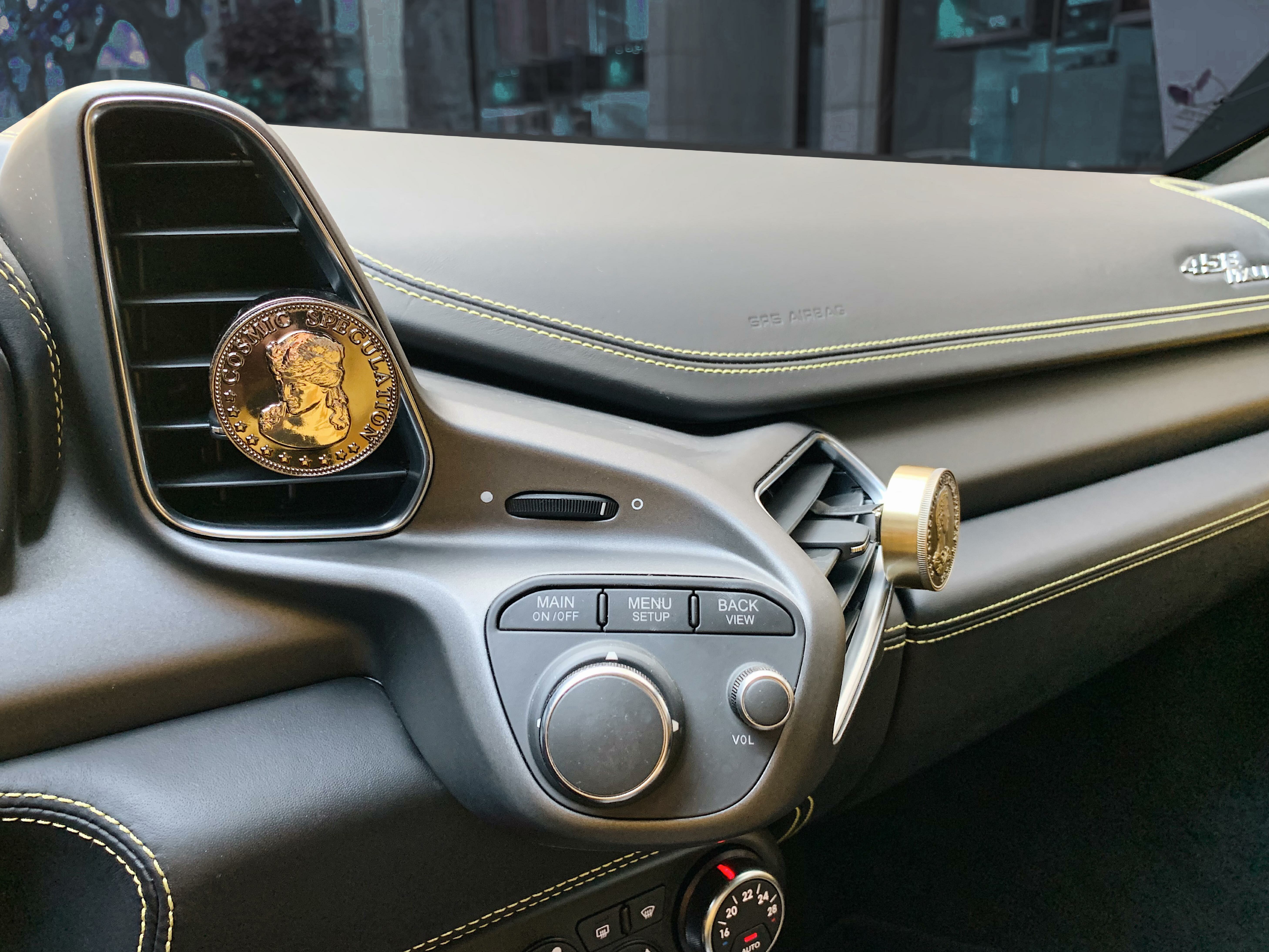 一盒套組內含:1個神話幣面車用香氛、1個車香支架、2款香蕊 (梨與白花&柏木與迷迭香)
